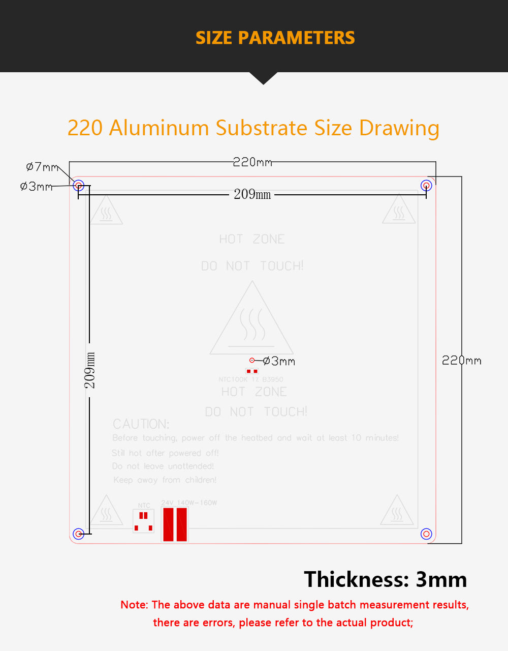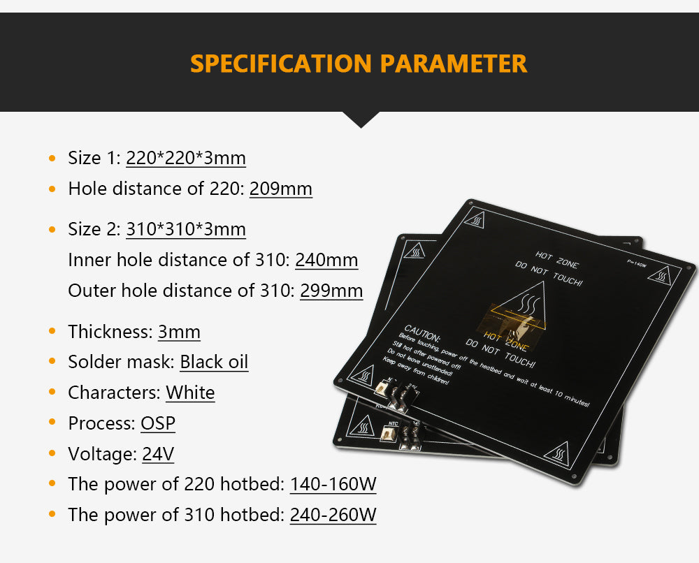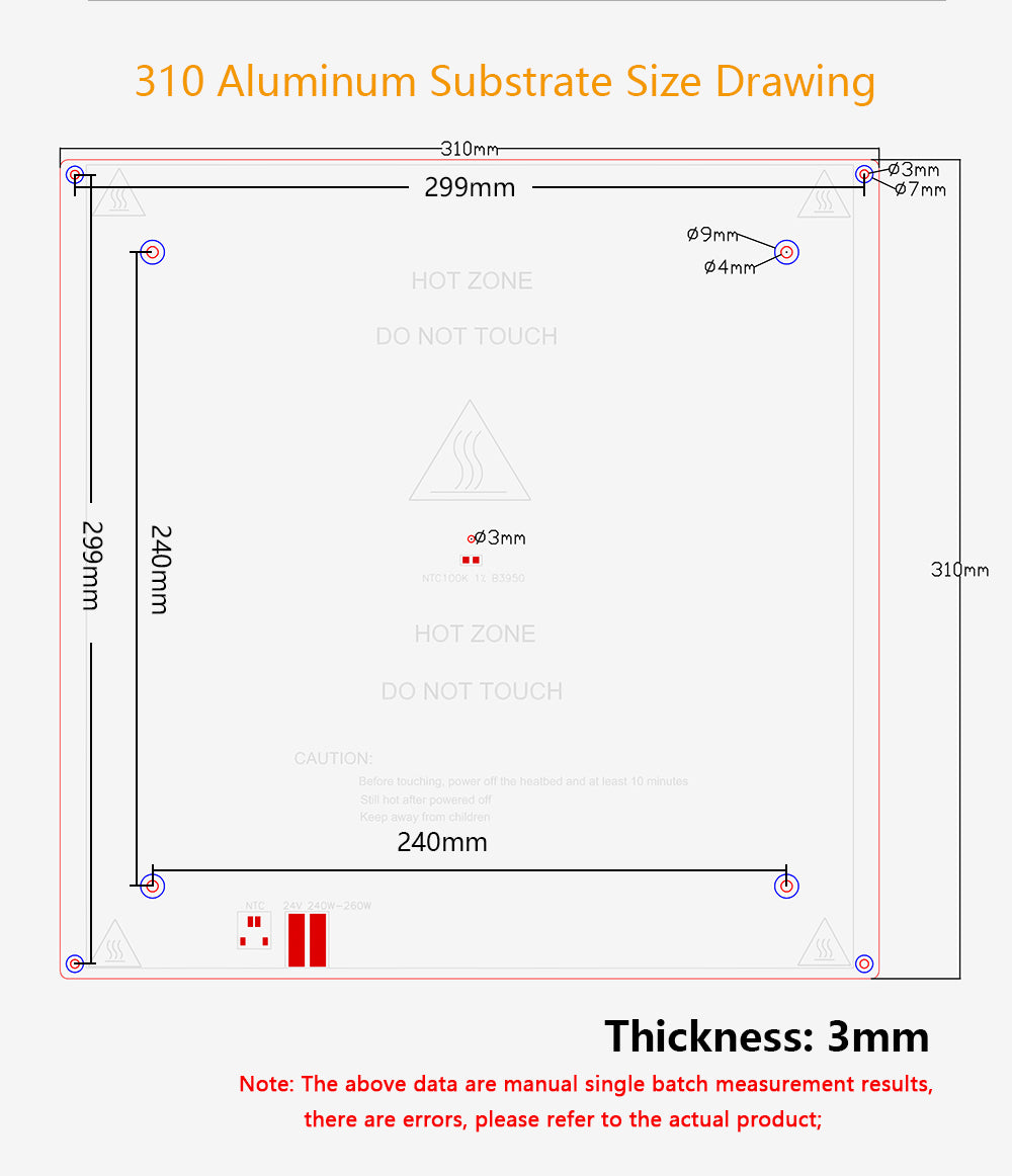 LERDGE 3D-Druckerteile 3 mm Aluminiumsubstrat Heißbett MK2A Beheizte Bettplatte Heizplattform Zubehör 235 * 235 mm 310 * 310 mm.