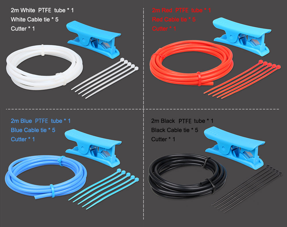 "2M PTFE mit Cutter" bezieht sich auf das 2 Meter lange PTFE-Rohr * 1 + Rohrschneider * 1 + Kabelbinder * 5.