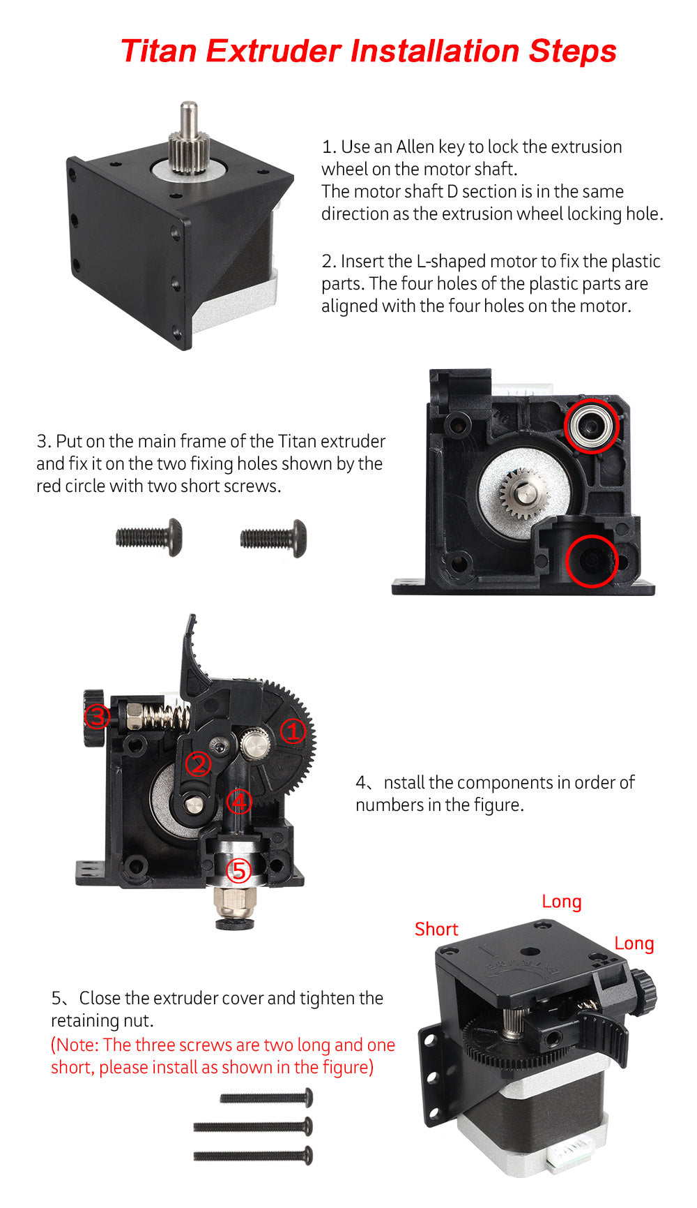 Conseils: La liste de colisage est une pièce de rechange de l'extrudeuse Titan, sans inclure le moteur pas à pas. Le moteur pas à pas de la figure ne fonctionne que comme un diagramme d'effets.