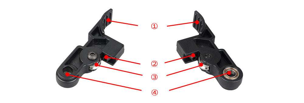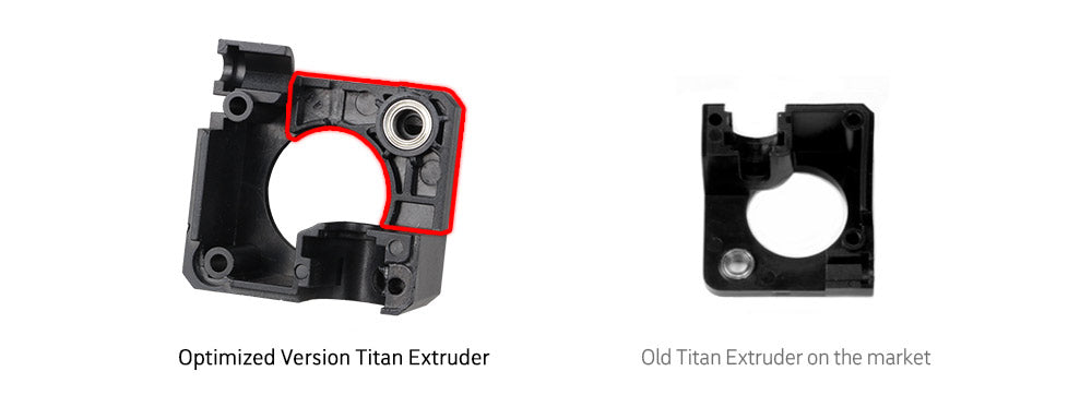 - Utilisez la conception de la roue de guidage à rainure en U, ce qui permet une alimentation sans déviation pour réduire le couple et aucune perte de l'engrenage d'extrusion. (La version originale du roulement plat ne peut pas empêcher efficacement la perte de couple causée par le suivi latéral des filaments et provoquer également une usure inutile de l'entrée en caoutchouc.)